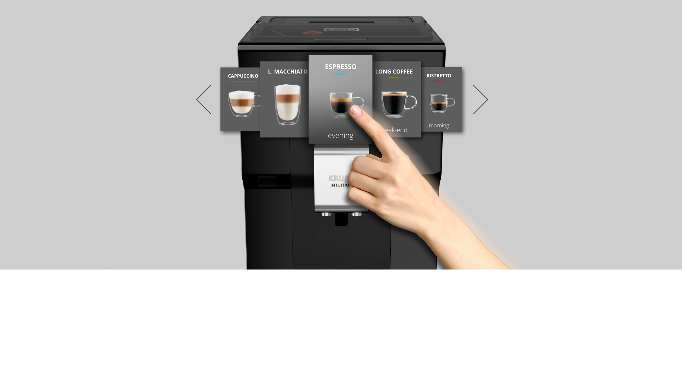 Lassen Sie sich jedes Mal von Ihrer Intuition zu einem perfekten Kaffee leiten. Mit der KRUPS Intuition Preference profitieren Sie von meisterlich zubereiteten Kaffee und der Quattro Force Technologie in einer fortschrittlichen Kaffeevollautomaten, die ein beeindruckendes Erlebnis verspricht. Dank des modernen, smartphone-ähnlichen Farb-Touchscreens und dem intuitive farbigen Lichtsystem,können Sie sowohl Ihre Maschine als auch Ihre gespeicherten Rezepte einstellen, um einfach auf Ihre Lieblingsgetränke zuzugreifen. Zugleich sorgen das geneigte Design, der frontale Zugang und der Überlaufschutz für äußerste Bedienerfreundlichkeit. Abgerundet wird das Ganze von einem integrierten ONE TOUCH CAPPUCCINO-System für perfekten Milchschaum und des einstellbaren Kaffeeauslaufs für große und kleine Tassen. Und da keinerlei Eingriff von Hand erforderlich ist, verbringen sie weniger Zeit mit der Reinigung und mehr mit dem Genuss Ihres Kaffees.