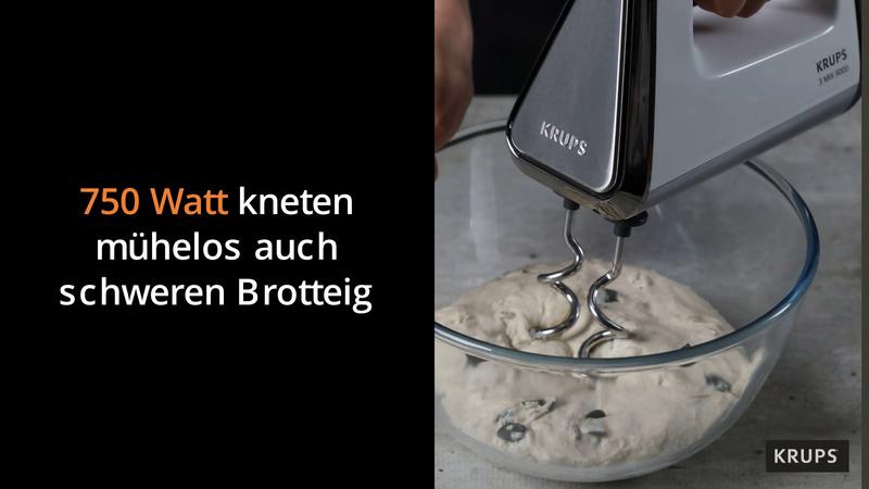Entdecken Sie einen Handmixer, auf den Sie sich verlassen können. Der KRUPS 3MIX 9000 kombiniert ein solides Design mit kraftvoller 750-Watt-Leistung, für optimale Zubereitungsergebnisse jeden Tag. Von luftig aufgeschlagener Sahne und Eischnee bis hin zu zähen, schweren und perfekt gekneteten Teigen – dieses vielseitige Handrührgerät kennt keine Grenzen. Entdecken Sie ein hervorragendes, an Ihre Bedürfnisse angepasstes Rührwerk mit Geschwindigkeitsregler, Turbomodus und Pulsfunktion. Genießen Sie außerdem eine komfortable Nutzung dank ergonomischem Design und praktischen Funktionen.