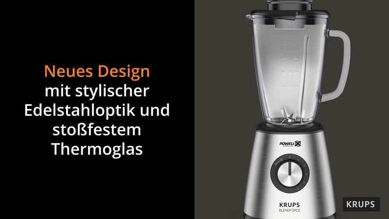 KONTROLLE: Blendforce + Standmixer von Krups mit voller Kontrolle und angepassten Mix-Ergebnissen dank fünf Geschwindigkeitsstufen und einer Pulsfunktion SCHNELL: Ein Mixer, der dank seiner exklusiven Messer mit der Powelix-Technologie* bis zu 30 % schneller ist LEISTUNGSSTARK: Rasches effizientes Mixen dank der Leistung von 800 W