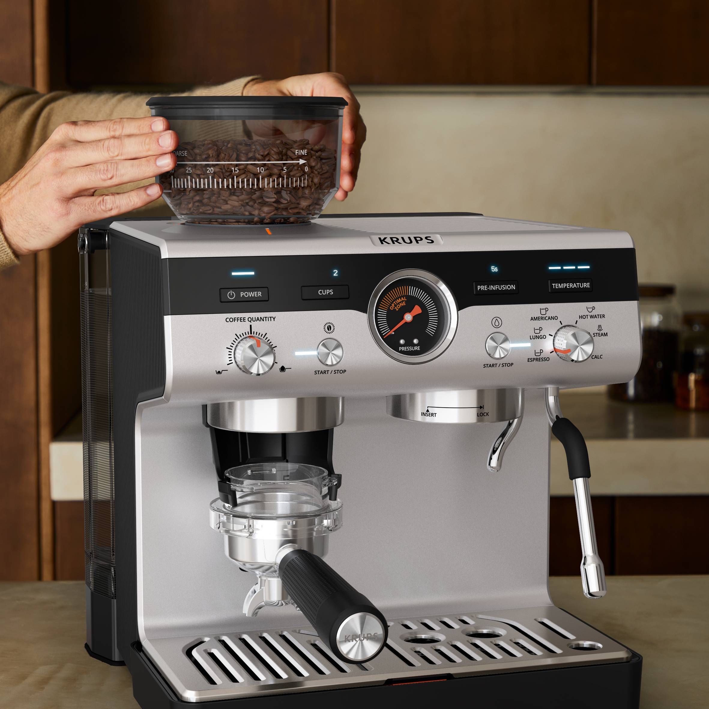 Genießen Sie ein unvergleichliches Espresso-Erlebnis mit Krups Precision+. Das integrierte Mahlwerk wird mit einer intuitiven Bedienfläche geliefert, die eine volle Kontrolle über den Espresso bietet, der mit exquisitem Geschmack und Aroma überzeugt. Die professionelle Dampfdüse wurde für Latte-Art-Liebhaber entwickelt und ermöglicht Ihnen, die Welt der Latte-Art zu erkunden, während die Tamper Station mit Abschlagbehälter für ein ultimatives Barista-Erlebnis sorgt – mit allem, was Sie brauchen, um Ihre eigene Tasse zuzubereiten.