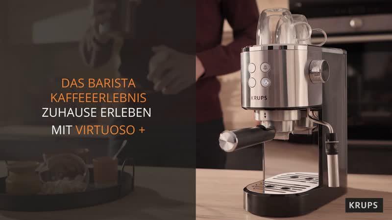 Die Virtuoso + Espressomaschine bietet alles, was Sie brauchen, um ein guter Barista zu sein und öffnet Ihnen die Tür zu einer ganz neuen Welt des Geschmacks. KRUPS ist der perfekte Begleiter, der Sie Schritt für Schritt zur perfekten Espressozubereitung in Barista-Qualität führt. Erzielen Sie mit Leichtigkeit makellose Ergebnisse dank der mitgelieferten Bedienungsanleitung mit Tipps und Techniken, und sehen Sie sich unsere hilfreichen Anleitungsvideos an, um Tag für Tag das Beste aus Ihrer Espressomaschine herauszuholen.